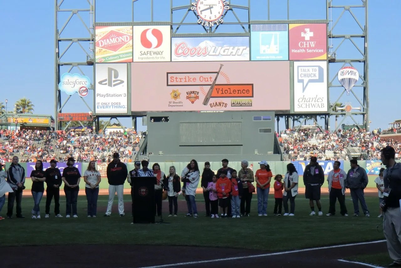 The genesis of Strike Out Violence day comes from the San Francisco Sheriff's Department's nationally recognized violence prevention program called Resolve to Stop the Violence Project (RSVP). As highlighted in Dreams from the Monster Factory, RSVP is a restorative justice program which recognizes that crime hurts everyone: victim, offender and community, and further creates the obligation to make things right. The San Francisco Giants have been satisfying their community obligation, as each year Strike Out Violence day is dedicated to community support for Victims and Survivors, as well as Offenders who have stopped their violence and given back to communities that they have harmed. The San Francisco Giants and the Sheriff's Department have both been stellar in their work to stop violence. These photos underscore their commitment in restoring dignity to individuals and in our communities.